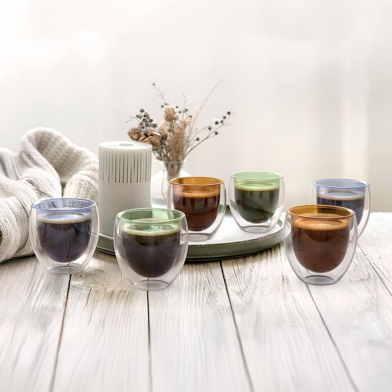 Lot de 6 tasses à double paroi colorées COFFEE CORNER - BJYM106